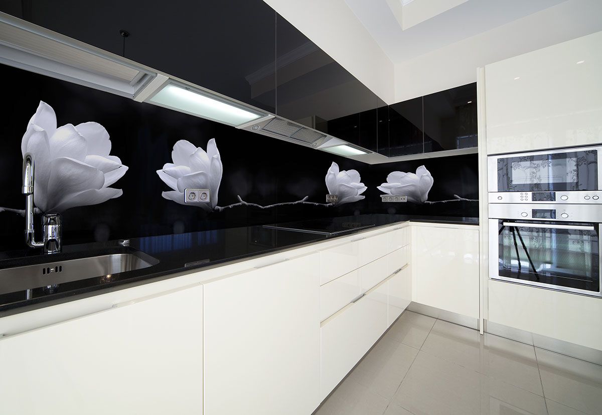 Die montagefertig angelieferten Glasrückwände für Küche und Bad werden mit Montageschaum oder Klebebändern (bei glatten Oberflächen) befestigt.